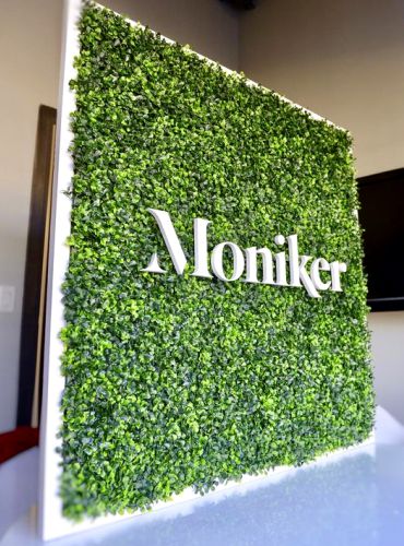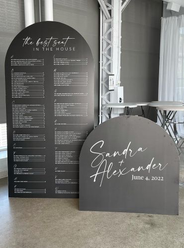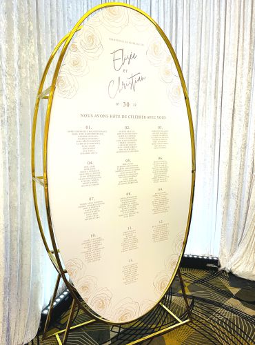 Louez notre enseigne propre et moderne avec une base élégante. Comprend la conception, l'impression et la livraison de l'enseigne.